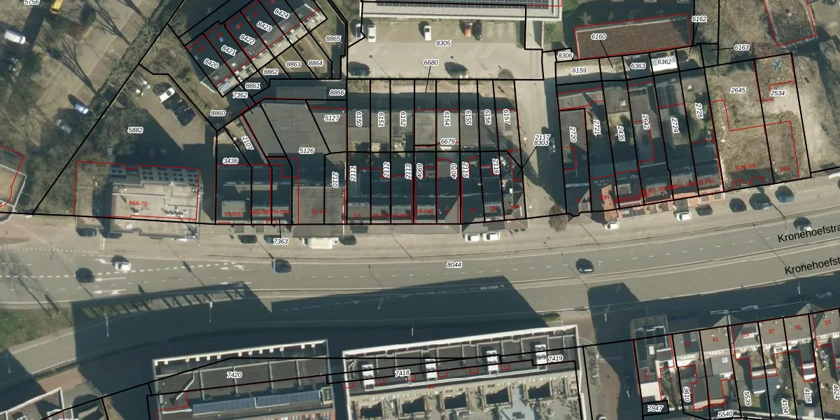 Het perceel waarop Kronehoefstraat 44-A staat heeft een oppervlakte van 94 m². Dit is een klein perceel. De perceeloppervlakte wordt geregistreerd door het Kadaster. Gedetailleerde informatie over de maten van dit perceel kunt u vinden in het rapport Kadastrale kaart met maatvoering van Kronehoefstraat 44-A.