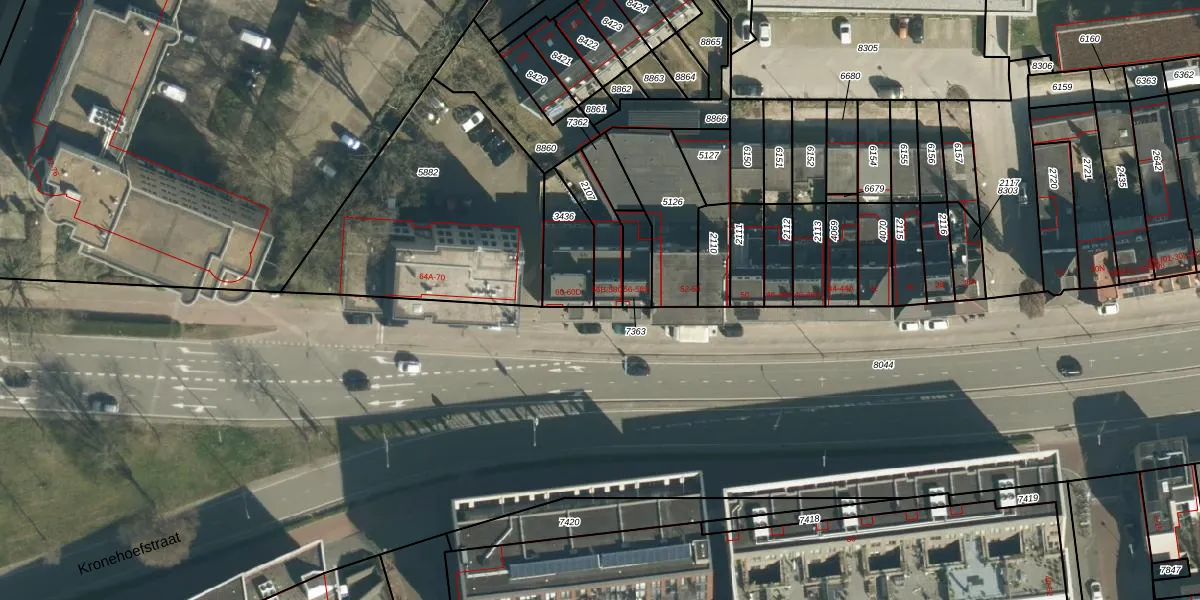 Het perceel waarop Kronehoefstraat 56-C staat heeft een oppervlakte van 127 m². Dit is een middelgroot perceel. De perceeloppervlakte wordt geregistreerd door het Kadaster. Gedetailleerde informatie over de maten van dit perceel kunt u vinden in het rapport Kadastrale kaart met maatvoering van Kronehoefstraat 56-C.