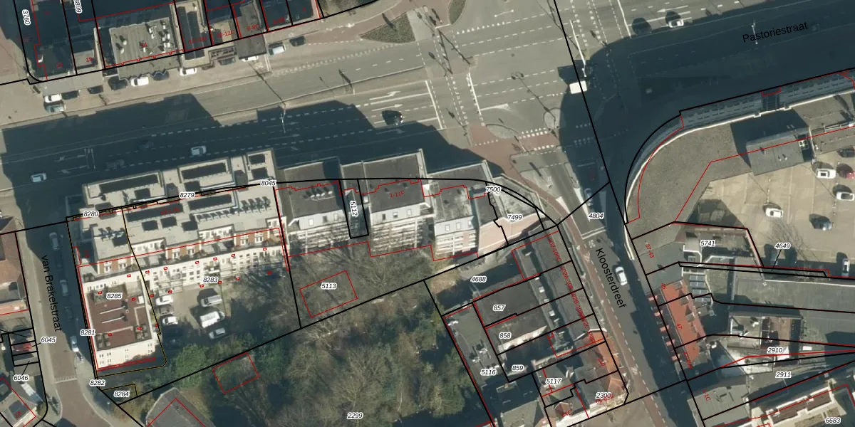 Het adres is gelegen op perceel 5113 in de sectie G en de kadastrale gemeente Woensel. De kadastrale aanduiding is aldus WSL01-G-5113. Het perceel is met 1216 m² relatief groot. Het gemiddelde ligt in de kadastrale gemeente Woensel op 1038,98 m². Het grootste perceel in de kadastrale gemeente is 74,9 ha. Het kleinste perceel heeft een oppervlakte van 0 m². Er zijn 86 adressen aanwezig op het perceel. De huidige grenzen van het perceel zijn digitaal in de Basisregistratie Kadaster (BRK) geregistreerd op 30-06-2015.