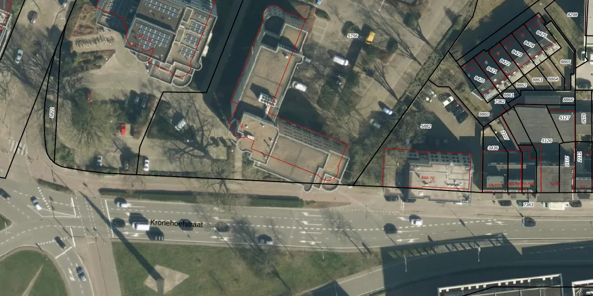 Het perceel waarop Kronehoefstraat 74 staat heeft een oppervlakte van 6135 m². Dit is een zeer groot perceel. De perceeloppervlakte wordt geregistreerd door het Kadaster. Gedetailleerde informatie over de maten van dit perceel kunt u vinden in het rapport Kadastrale kaart met maatvoering van Kronehoefstraat 74.