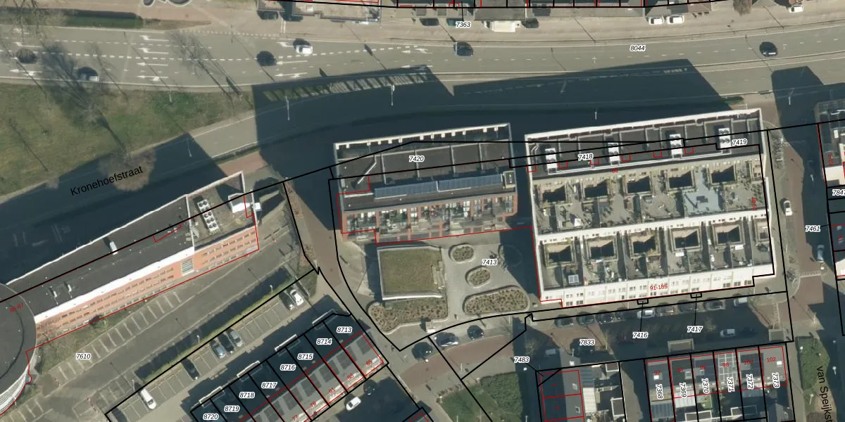 Kronehoefstraat 83 is gelegen op kadastraal perceel WSL01G7413. Deze kadastrale aanduiding is uniek en wordt gebruikt door het Kadaster om eigendomsrechten en andere zakelijke rechten vast te leggen. Het perceel maakt onderdeel uit van de kadastrale gemeente Woensel.