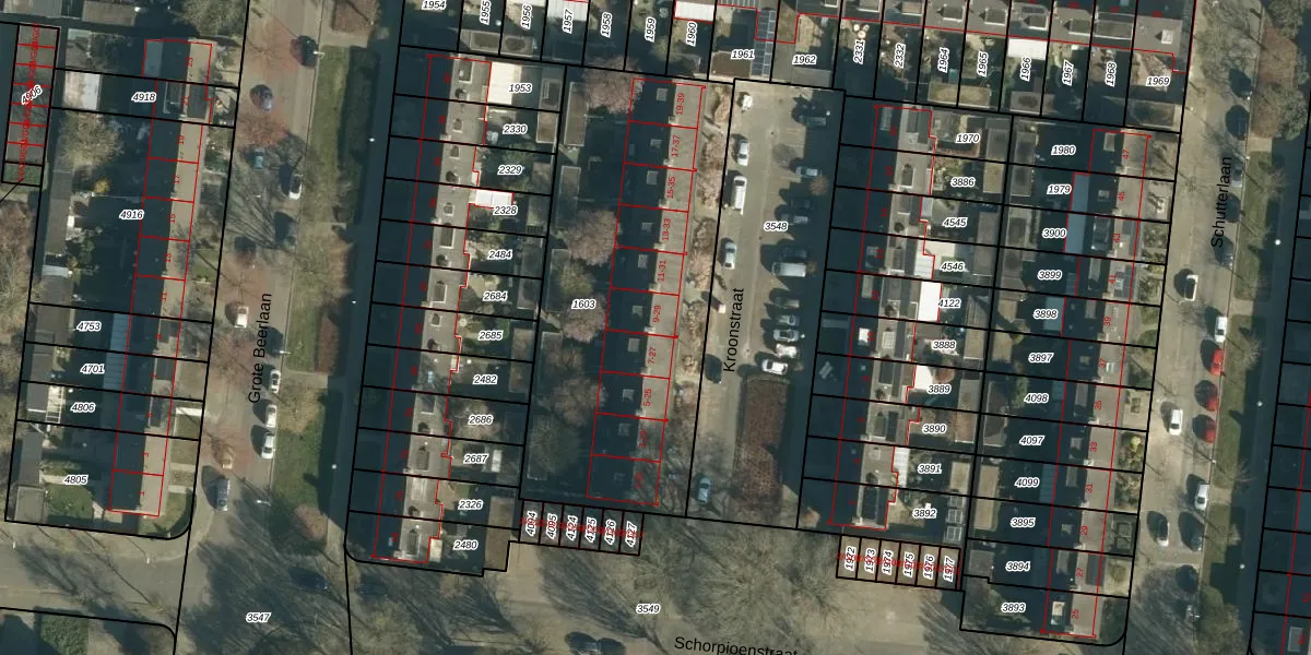 Het perceel waarop Kroonstraat 9 staat heeft een oppervlakte van 1713 m². Dit is een zeer groot perceel. De perceeloppervlakte wordt geregistreerd door het Kadaster. Gedetailleerde informatie over de maten van dit perceel kunt u vinden in het rapport Kadastrale kaart met maatvoering van Kroonstraat 9.