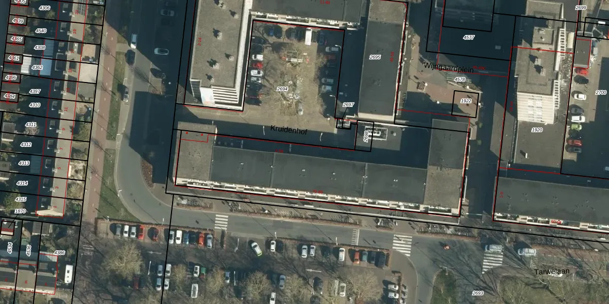 Het perceel waarop Kruidenhof 22 staat heeft een oppervlakte van 3967 m². Dit is een zeer groot perceel. De perceeloppervlakte wordt geregistreerd door het Kadaster. Gedetailleerde informatie over de maten van dit perceel kunt u vinden in het rapport Kadastrale kaart met maatvoering van Kruidenhof 22.