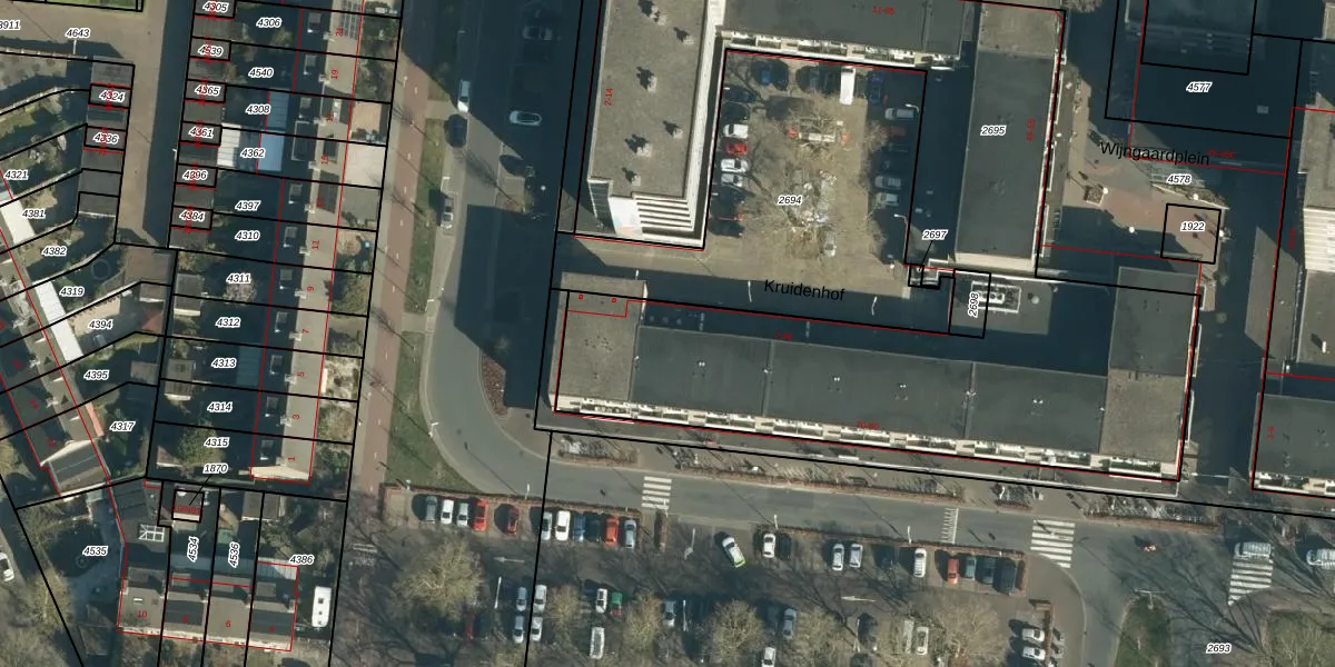 Kruidenhof 34 is gelegen op kadastraal perceel WSL01C2695. Deze kadastrale aanduiding is uniek en wordt gebruikt door het Kadaster om eigendomsrechten en andere zakelijke rechten vast te leggen. Het perceel maakt onderdeel uit van de kadastrale gemeente Woensel.
