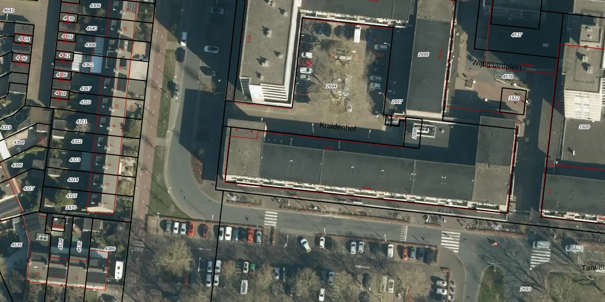 Het perceel waarop Kruidenhof 40 staat heeft een oppervlakte van 3967 m². Dit is een zeer groot perceel. De perceeloppervlakte wordt geregistreerd door het Kadaster. Gedetailleerde informatie over de maten van dit perceel kunt u vinden in het rapport Kadastrale kaart met maatvoering van Kruidenhof 40.