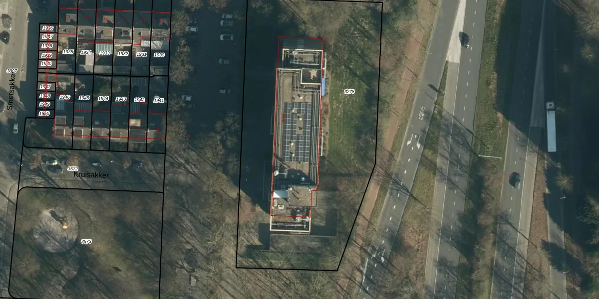 Het perceel waarop Kruisakker 50 staat heeft een oppervlakte van 3841 m². Dit is een zeer groot perceel. De perceeloppervlakte wordt geregistreerd door het Kadaster. Gedetailleerde informatie over de maten van dit perceel kunt u vinden in het rapport Kadastrale kaart met maatvoering van Kruisakker 50.