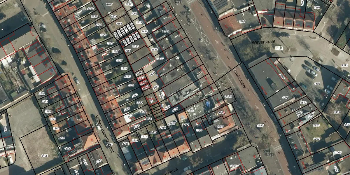 Kruisstraat 107 is gelegen op kadastraal perceel WSL01G4097. Deze kadastrale aanduiding is uniek en wordt gebruikt door het Kadaster om eigendomsrechten en andere zakelijke rechten vast te leggen. Het perceel maakt onderdeel uit van de kadastrale gemeente Woensel.