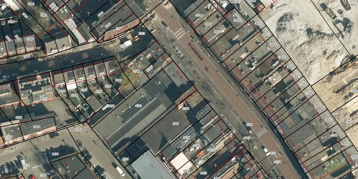 Het perceel waarop Kruisstraat 183 staat heeft een oppervlakte van 1241 m². Dit is een zeer groot perceel. De perceeloppervlakte wordt geregistreerd door het Kadaster. Gedetailleerde informatie over de maten van dit perceel kunt u vinden in het rapport Kadastrale kaart met maatvoering van Kruisstraat 183.