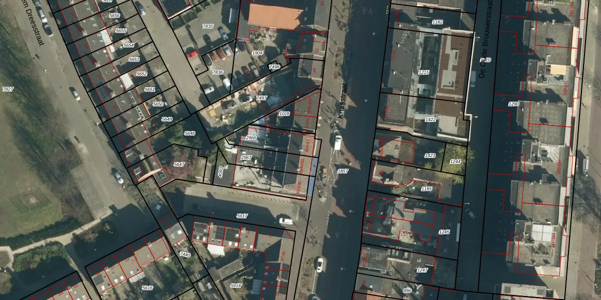 Kruisstraat 45-A is gelegen op kadastraal perceel WSL01G2966. Deze kadastrale aanduiding is uniek en wordt gebruikt door het Kadaster om eigendomsrechten en andere zakelijke rechten vast te leggen. Het perceel maakt onderdeel uit van de kadastrale gemeente Woensel.