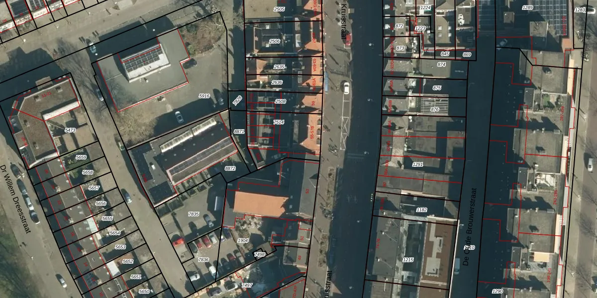 Kruisstraat 55-A is gelegen op kadastraal perceel WSL01G7514. Deze kadastrale aanduiding is uniek en wordt gebruikt door het Kadaster om eigendomsrechten en andere zakelijke rechten vast te leggen. Het perceel maakt onderdeel uit van de kadastrale gemeente Woensel.