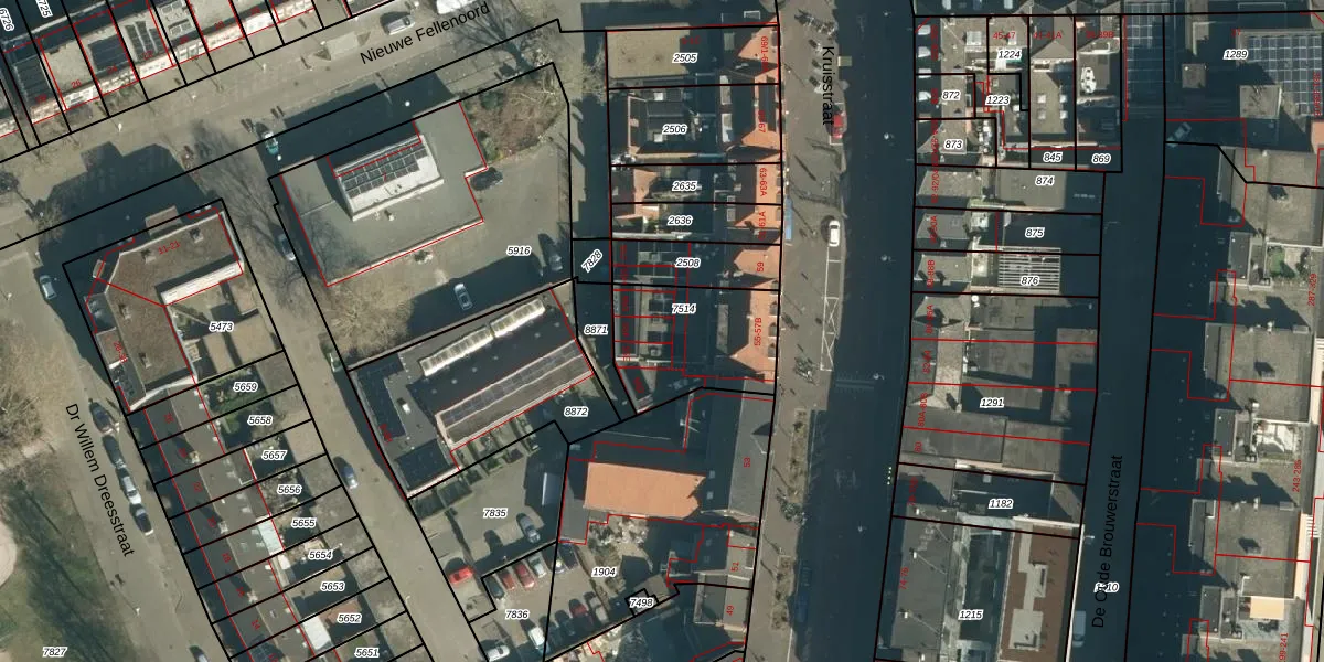 Het perceel waarop Kruisstraat 55-F staat heeft een oppervlakte van 410 m². Dit is een groot perceel. De perceeloppervlakte wordt geregistreerd door het Kadaster. Gedetailleerde informatie over de maten van dit perceel kunt u vinden in het rapport Kadastrale kaart met maatvoering van Kruisstraat 55-F.