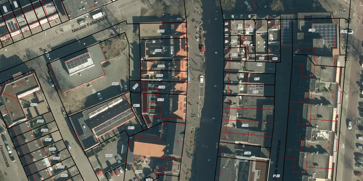 Het perceel waarop Kruisstraat 59 staat heeft een oppervlakte van 167 m². Dit is een middelgroot perceel. De perceeloppervlakte wordt geregistreerd door het Kadaster. Gedetailleerde informatie over de maten van dit perceel kunt u vinden in het rapport Kadastrale kaart met maatvoering van Kruisstraat 59.