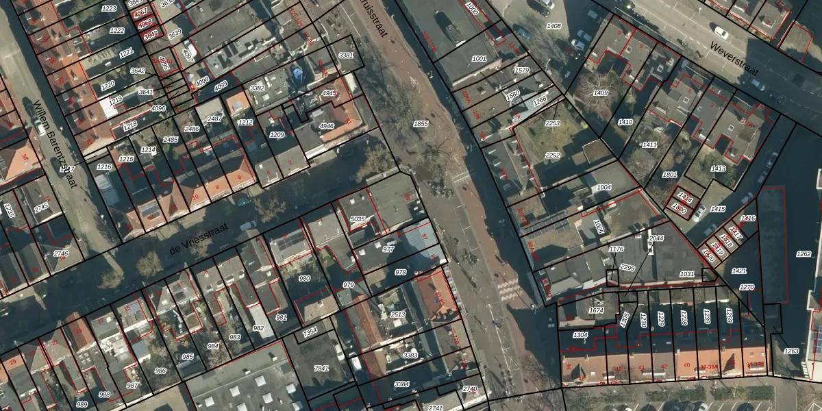Gebruik de zoekbalk of klik op een perceel voor informatie over de adressen binnen dit perceel.