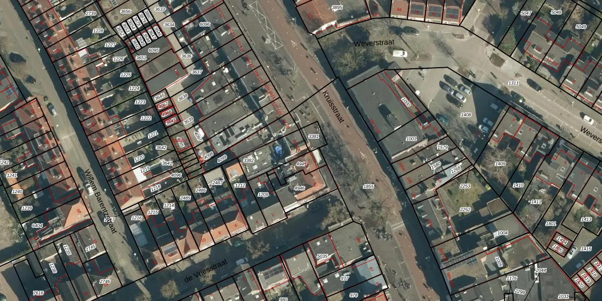 Het perceel waarop Kruisstraat 95 staat heeft een oppervlakte van 187 m². Dit is een middelgroot perceel. De perceeloppervlakte wordt geregistreerd door het Kadaster. Gedetailleerde informatie over de maten van dit perceel kunt u vinden in het rapport Kadastrale kaart met maatvoering van Kruisstraat 95.