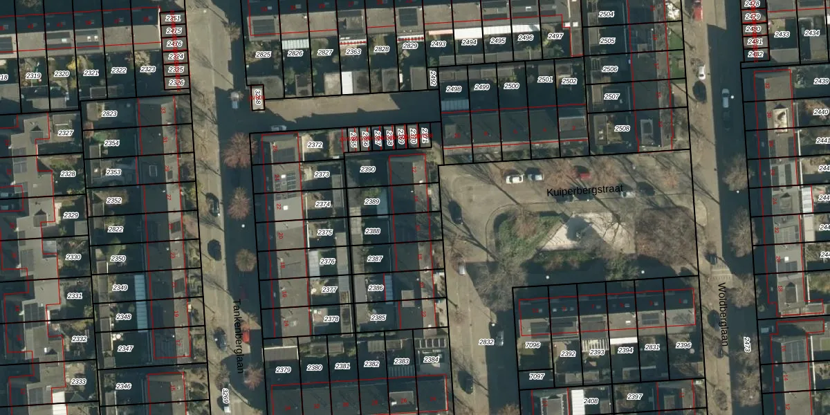 Gebruik de zoekbalk of klik op een perceel voor informatie over de adressen binnen dit perceel.