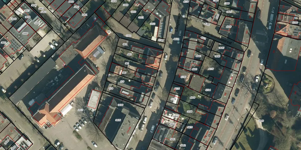 Gebruik de zoekbalk of klik op een perceel voor informatie over de adressen binnen dit perceel.