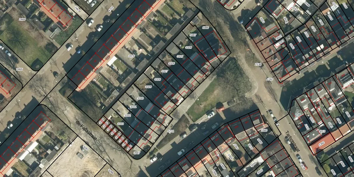 Gebruik de zoekbalk of klik op een perceel voor informatie over de adressen binnen dit perceel.
