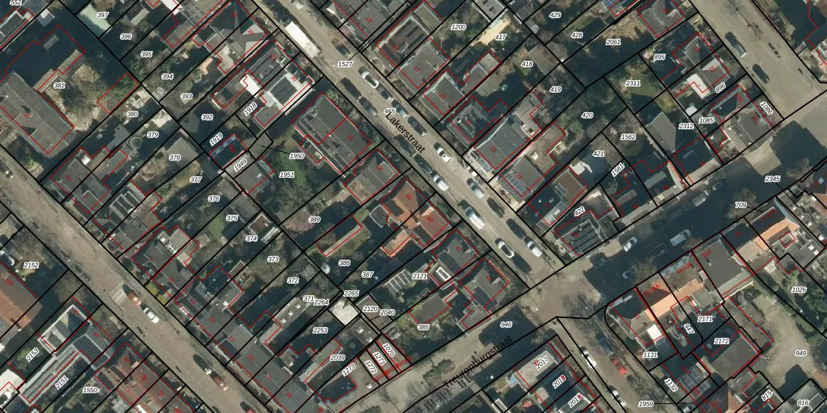 Lakerstraat 38 is gelegen op kadastraal perceel TGR00F388. Deze kadastrale aanduiding is uniek en wordt gebruikt door het Kadaster om eigendomsrechten en andere zakelijke rechten vast te leggen. Het perceel maakt onderdeel uit van de kadastrale gemeente Tongelre.