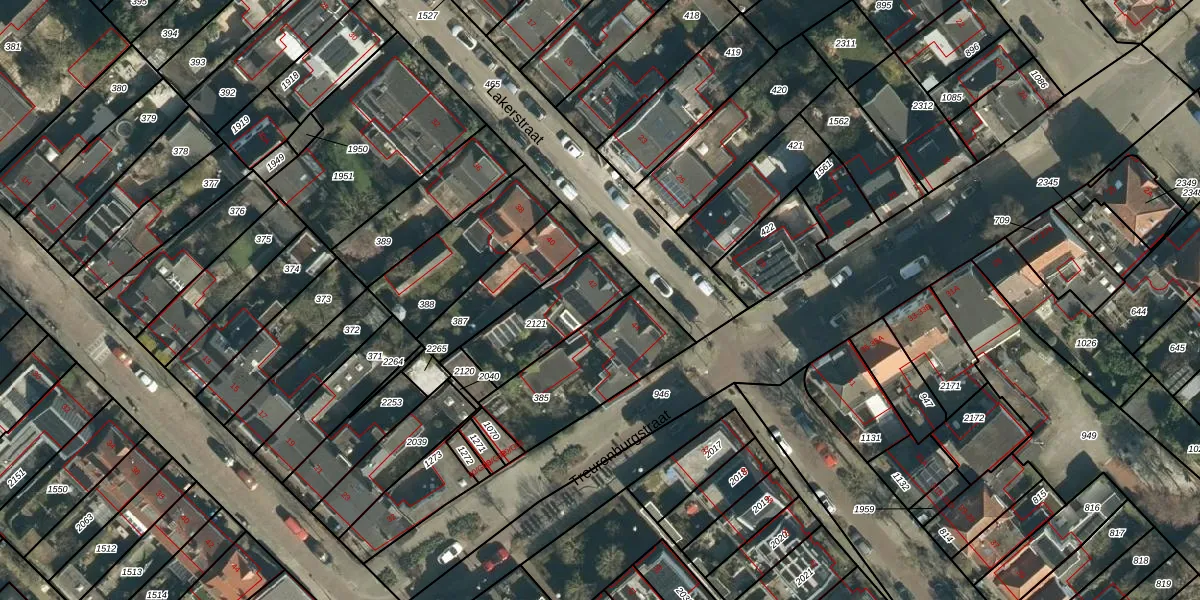 Lakerstraat 42 is gelegen op kadastraal perceel TGR00F2121. Deze kadastrale aanduiding is uniek en wordt gebruikt door het Kadaster om eigendomsrechten en andere zakelijke rechten vast te leggen. Het perceel maakt onderdeel uit van de kadastrale gemeente Tongelre.