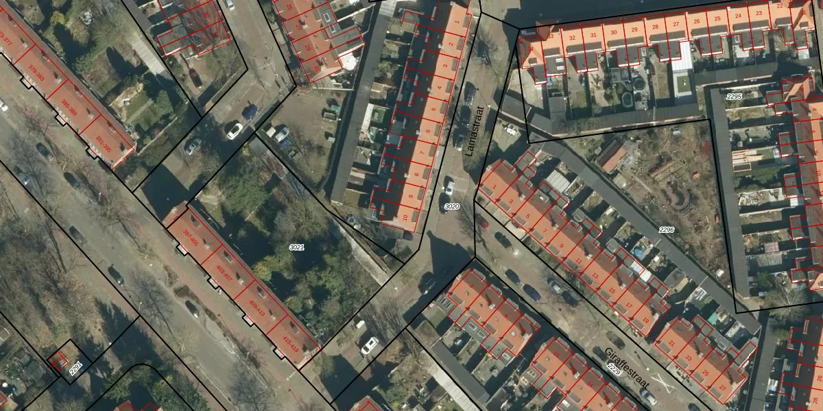 Het perceel waarop Lamastraat 9 staat heeft een oppervlakte van 7859 m². Dit is een zeer groot perceel. De perceeloppervlakte wordt geregistreerd door het Kadaster. Gedetailleerde informatie over de maten van dit perceel kunt u vinden in het rapport Kadastrale kaart met maatvoering van Lamastraat 9.