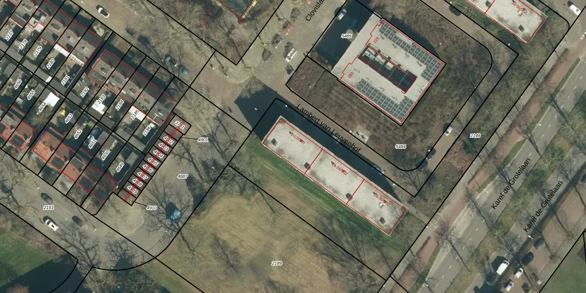 Het perceel waarop Lambert van Leuvenhof 12-G01 staat heeft een oppervlakte van 3731 m². Dit is een zeer groot perceel. De perceeloppervlakte wordt geregistreerd door het Kadaster. Gedetailleerde informatie over de maten van dit perceel kunt u vinden in het rapport Kadastrale kaart met maatvoering van Lambert van Leuvenhof 12-G01.