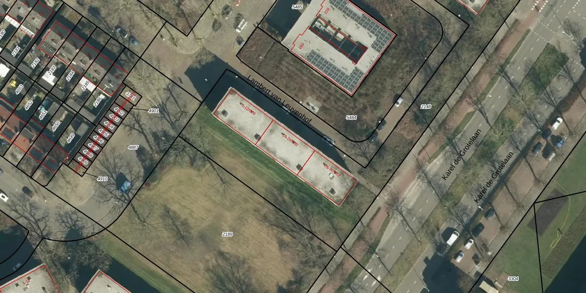 Het perceel waarop Lambert van Leuvenhof 16 staat heeft een oppervlakte van 3731 m². Dit is een zeer groot perceel. De perceeloppervlakte wordt geregistreerd door het Kadaster. Gedetailleerde informatie over de maten van dit perceel kunt u vinden in het rapport Kadastrale kaart met maatvoering van Lambert van Leuvenhof 16.