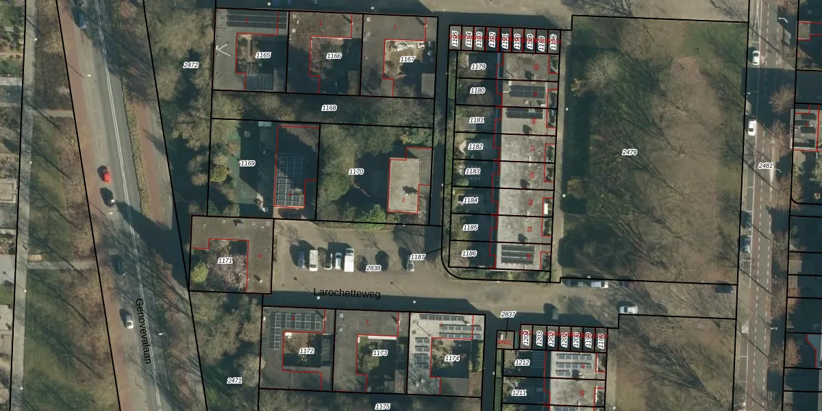 Larochetteweg 2 is gelegen op kadastraal perceel WSL01P1170. Deze kadastrale aanduiding is uniek en wordt gebruikt door het Kadaster om eigendomsrechten en andere zakelijke rechten vast te leggen. Het perceel maakt onderdeel uit van de kadastrale gemeente Woensel.