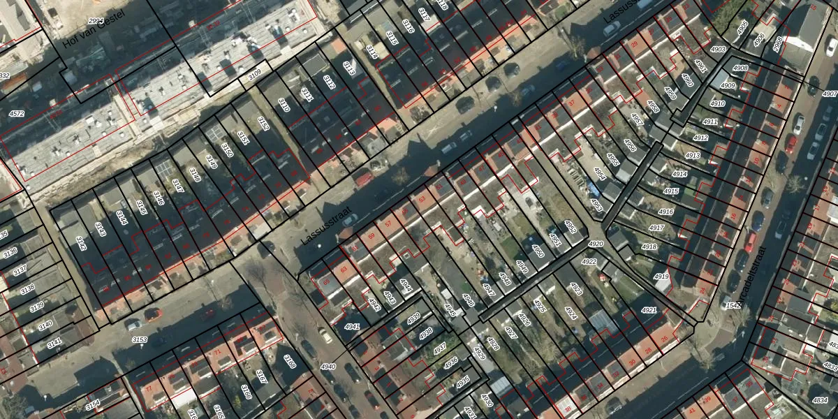 Lassusstraat 53 is gelegen op kadastraal perceel GTL01C4947. Deze kadastrale aanduiding is uniek en wordt gebruikt door het Kadaster om eigendomsrechten en andere zakelijke rechten vast te leggen. Het perceel maakt onderdeel uit van de kadastrale gemeente Gestel.