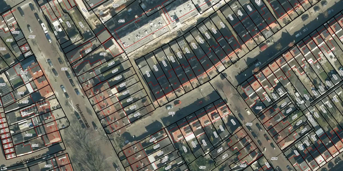 Gebruik de zoekbalk of klik op een perceel voor informatie over de adressen binnen dit perceel.