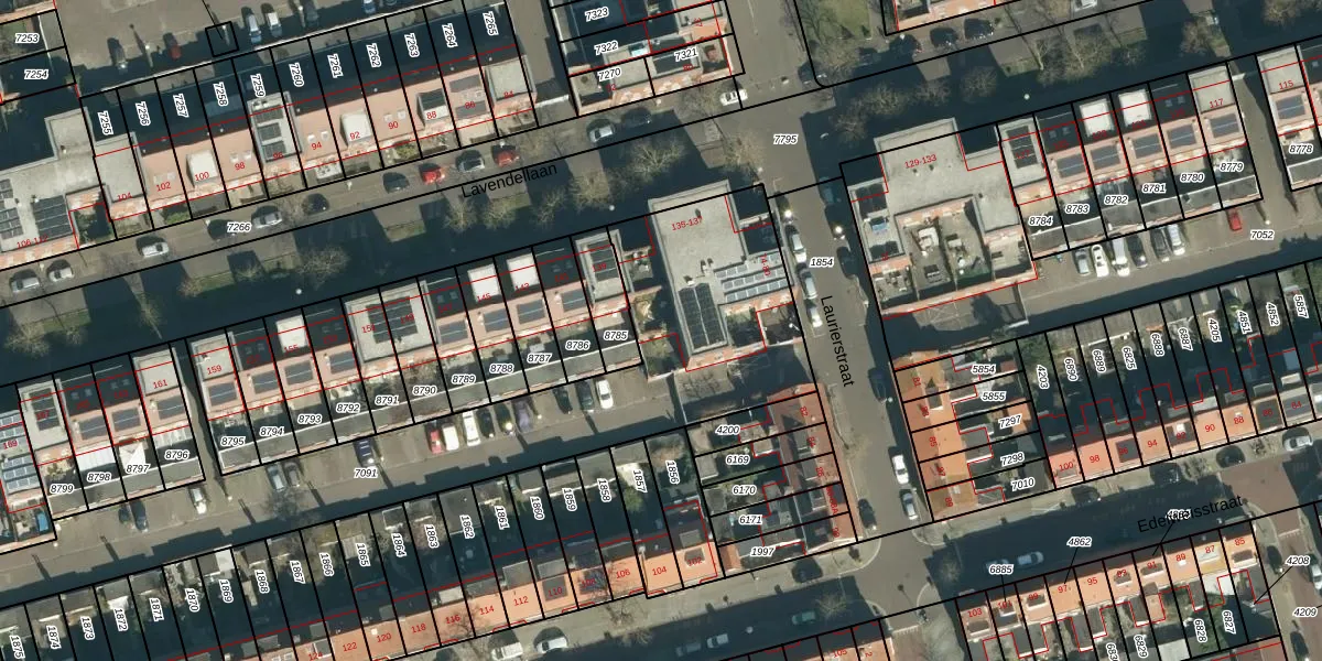 Het perceel waarop Laurierstraat 80 staat heeft een oppervlakte van 2155 m². Dit is een zeer groot perceel. De perceeloppervlakte wordt geregistreerd door het Kadaster. Gedetailleerde informatie over de maten van dit perceel kunt u vinden in het rapport Kadastrale kaart met maatvoering van Laurierstraat 80.