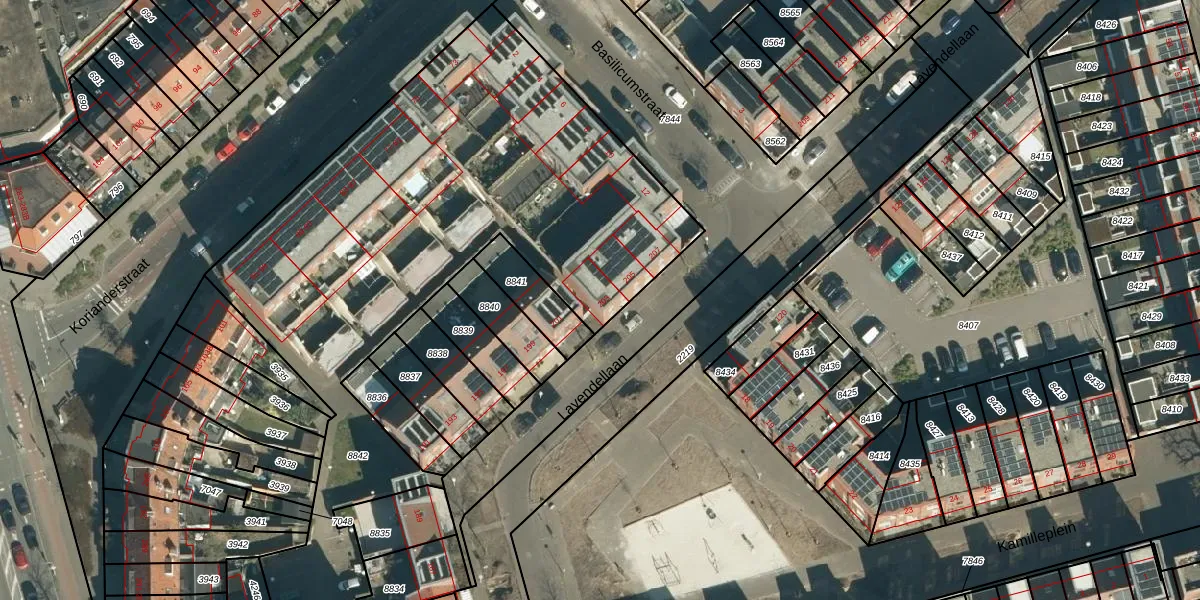 Het perceel waarop Lavendellaan 203 staat heeft een oppervlakte van 3086 m². Dit is een zeer groot perceel. De perceeloppervlakte wordt geregistreerd door het Kadaster. Gedetailleerde informatie over de maten van dit perceel kunt u vinden in het rapport Kadastrale kaart met maatvoering van Lavendellaan 203.