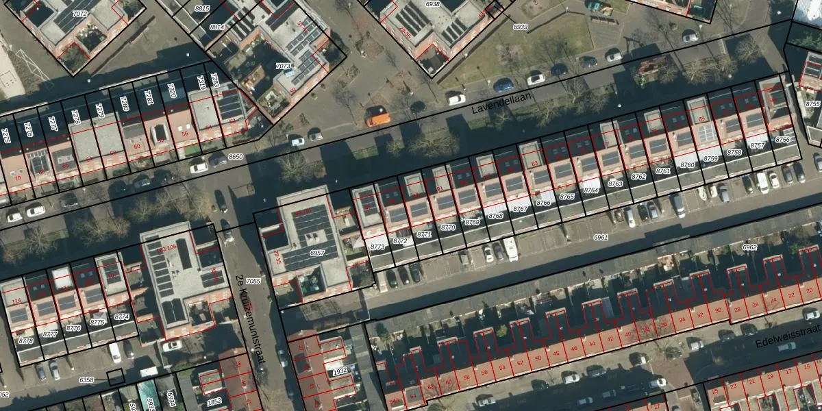Lavendellaan 93 is gelegen op kadastraal perceel STM00D8771. Deze kadastrale aanduiding is uniek en wordt gebruikt door het Kadaster om eigendomsrechten en andere zakelijke rechten vast te leggen. Het perceel maakt onderdeel uit van de kadastrale gemeente Stratum.