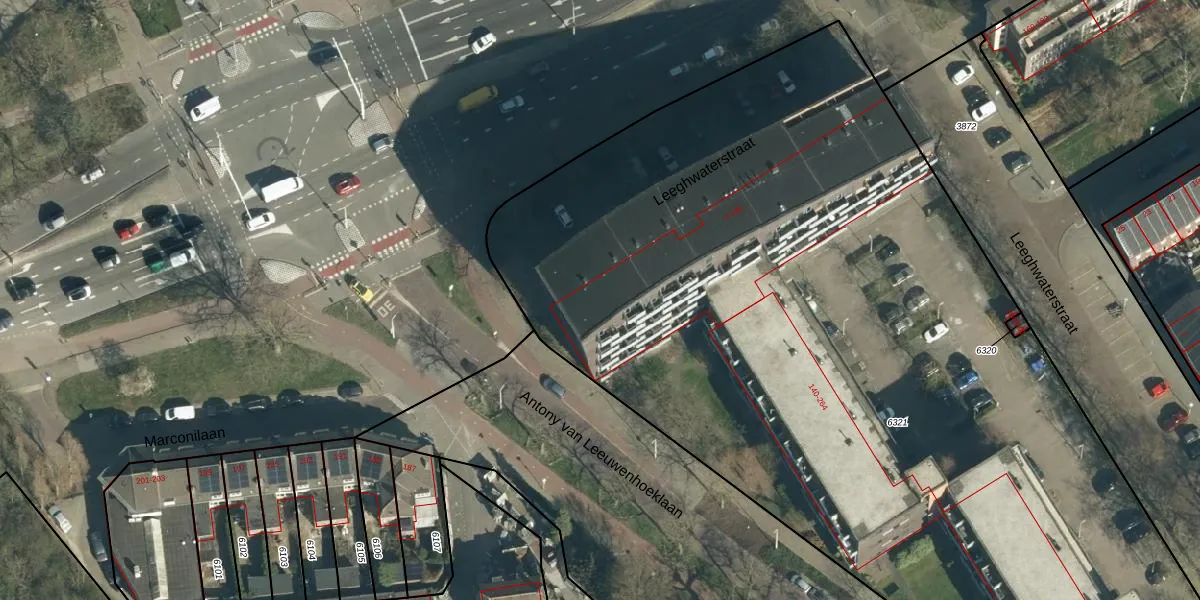Leeghwaterstraat 6 is gelegen op kadastraal perceel WSL01G6321. Deze kadastrale aanduiding is uniek en wordt gebruikt door het Kadaster om eigendomsrechten en andere zakelijke rechten vast te leggen. Het perceel maakt onderdeel uit van de kadastrale gemeente Woensel.