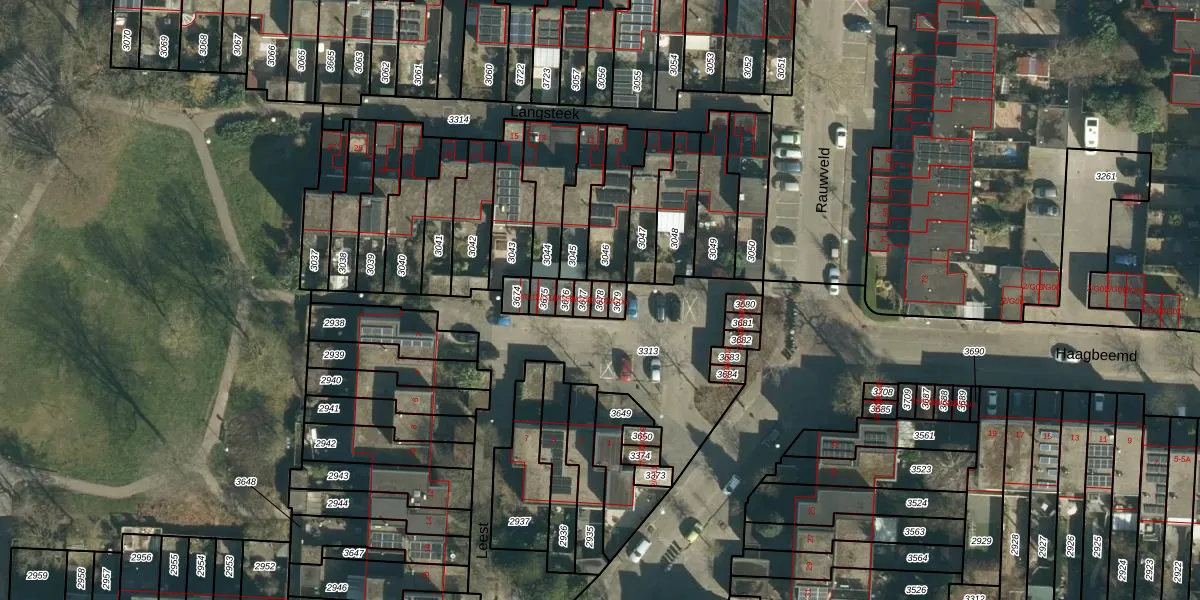 Gebruik de zoekbalk of klik op een perceel voor informatie over de adressen binnen dit perceel.