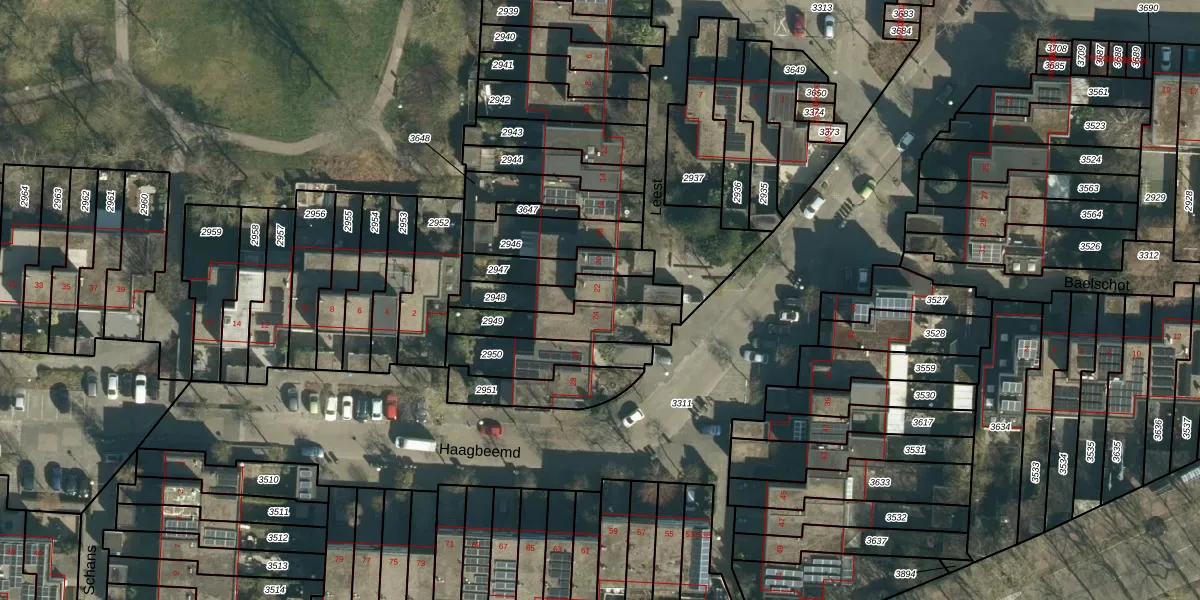 Gebruik de zoekbalk of klik op een perceel voor informatie over de adressen binnen dit perceel.