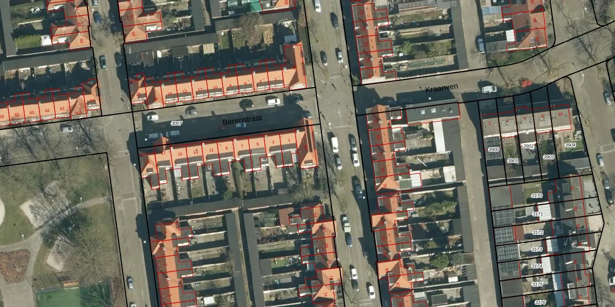 Het perceel waarop Leeuwenstraat 62 staat heeft een oppervlakte van 1,3 ha. Dit is een zeer groot perceel. De perceeloppervlakte wordt geregistreerd door het Kadaster. Gedetailleerde informatie over de maten van dit perceel kunt u vinden in het rapport Kadastrale kaart met maatvoering van Leeuwenstraat 62.