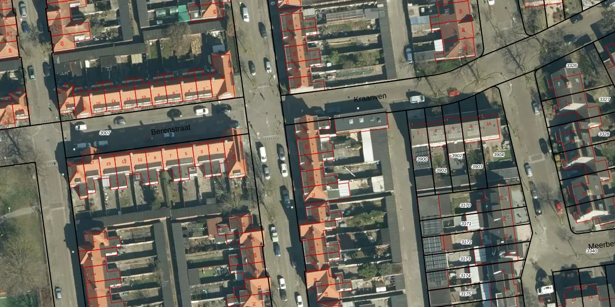 Het perceel waarop Leeuwenstraat 69 staat heeft een oppervlakte van 7359 m². Dit is een zeer groot perceel. De perceeloppervlakte wordt geregistreerd door het Kadaster. Gedetailleerde informatie over de maten van dit perceel kunt u vinden in het rapport Kadastrale kaart met maatvoering van Leeuwenstraat 69.