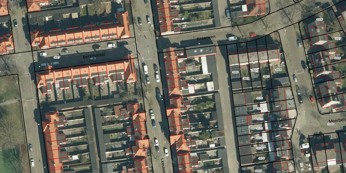 Het perceel waarop Leeuwenstraat 73 staat heeft een oppervlakte van 7359 m². Dit is een zeer groot perceel. De perceeloppervlakte wordt geregistreerd door het Kadaster. Gedetailleerde informatie over de maten van dit perceel kunt u vinden in het rapport Kadastrale kaart met maatvoering van Leeuwenstraat 73.