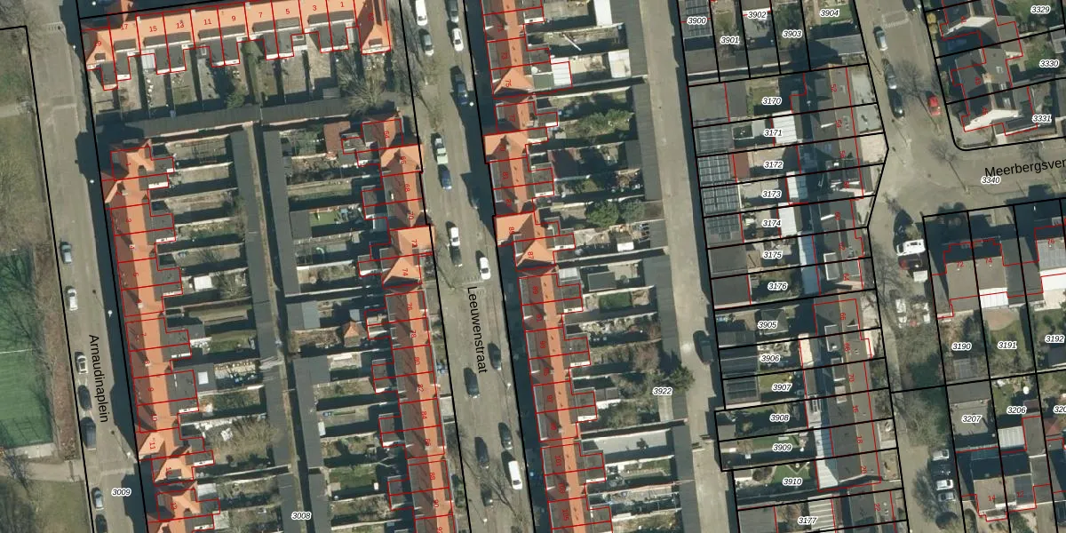Het perceel waarop Leeuwenstraat 87 staat heeft een oppervlakte van 7359 m². Dit is een zeer groot perceel. De perceeloppervlakte wordt geregistreerd door het Kadaster. Gedetailleerde informatie over de maten van dit perceel kunt u vinden in het rapport Kadastrale kaart met maatvoering van Leeuwenstraat 87.