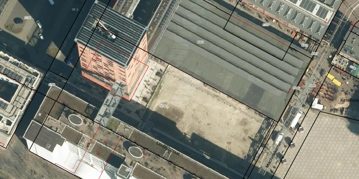 Het perceel waarop Leidingstraat 66-15 staat heeft een oppervlakte van 5390 m². Dit is een zeer groot perceel. De perceeloppervlakte wordt geregistreerd door het Kadaster. Gedetailleerde informatie over de maten van dit perceel kunt u vinden in het rapport Kadastrale kaart met maatvoering van Leidingstraat 66-15.