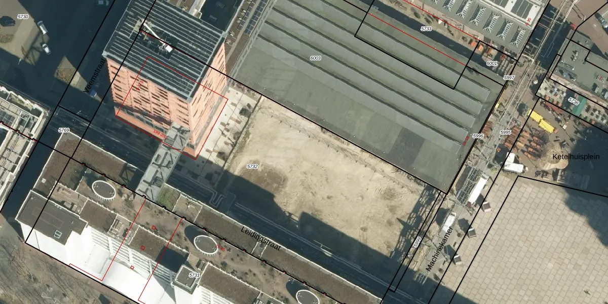 Het perceel waarop Leidingstraat 66-17 staat heeft een oppervlakte van 5390 m². Dit is een zeer groot perceel. De perceeloppervlakte wordt geregistreerd door het Kadaster. Gedetailleerde informatie over de maten van dit perceel kunt u vinden in het rapport Kadastrale kaart met maatvoering van Leidingstraat 66-17.