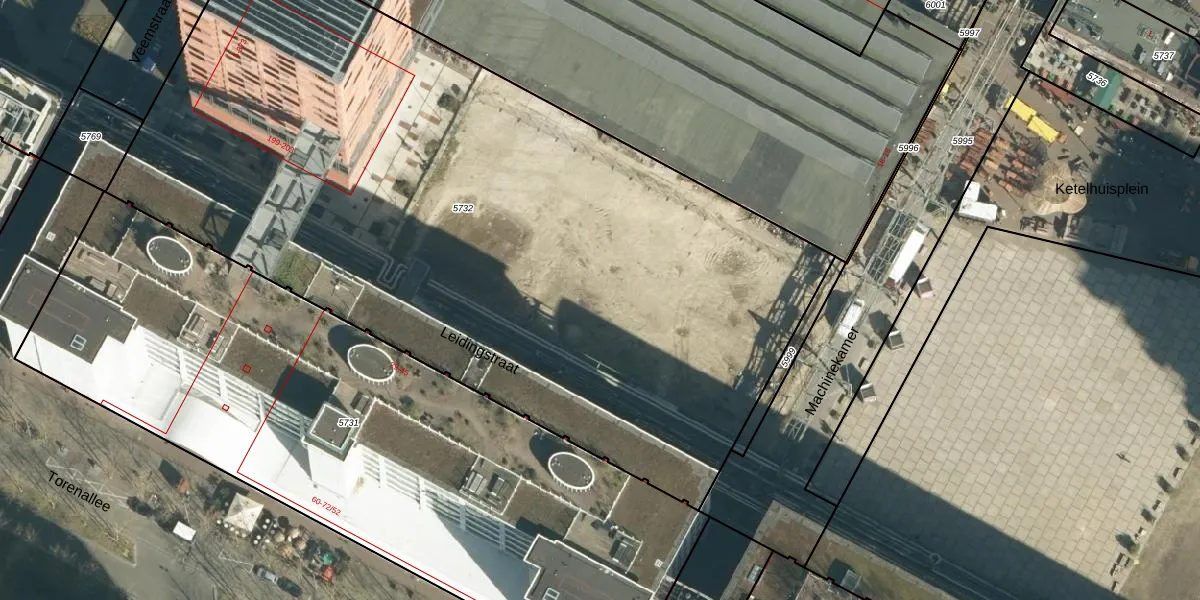 Het perceel waarop Leidingstraat 66-21 staat heeft een oppervlakte van 5390 m². Dit is een zeer groot perceel. De perceeloppervlakte wordt geregistreerd door het Kadaster. Gedetailleerde informatie over de maten van dit perceel kunt u vinden in het rapport Kadastrale kaart met maatvoering van Leidingstraat 66-21.