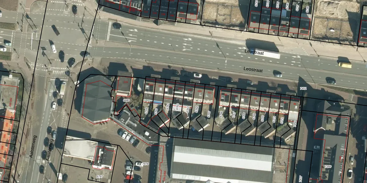 Leostraat 107 is gelegen op kadastraal perceel STM00D6762. Deze kadastrale aanduiding is uniek en wordt gebruikt door het Kadaster om eigendomsrechten en andere zakelijke rechten vast te leggen. Het perceel maakt onderdeel uit van de kadastrale gemeente Stratum.