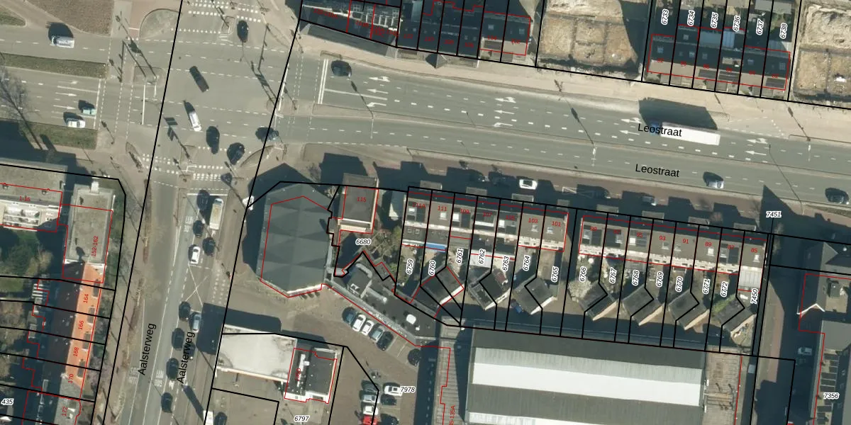 Leostraat 111-A is gelegen op kadastraal perceel STM00D6759. Deze kadastrale aanduiding is uniek en wordt gebruikt door het Kadaster om eigendomsrechten en andere zakelijke rechten vast te leggen. Het perceel maakt onderdeel uit van de kadastrale gemeente Stratum.