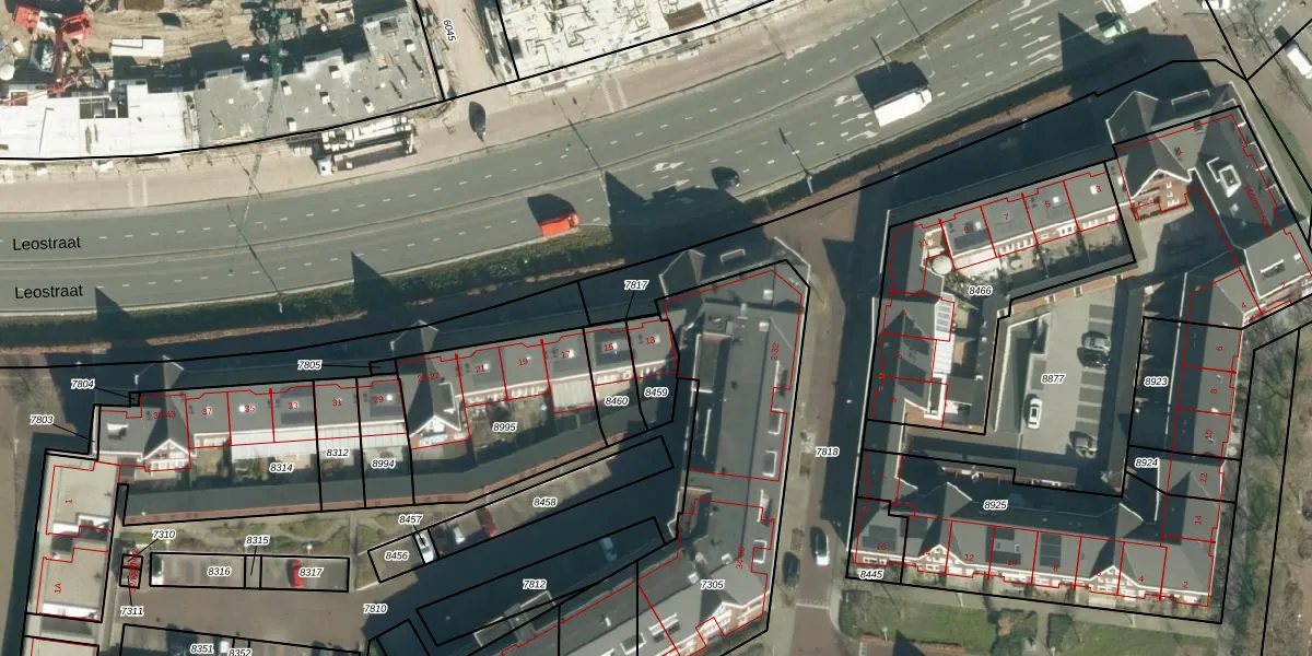 Het perceel waarop Leostraat 13 staat heeft een oppervlakte van 96 m². Dit is een klein perceel. De perceeloppervlakte wordt geregistreerd door het Kadaster. Gedetailleerde informatie over de maten van dit perceel kunt u vinden in het rapport Kadastrale kaart met maatvoering van Leostraat 13.