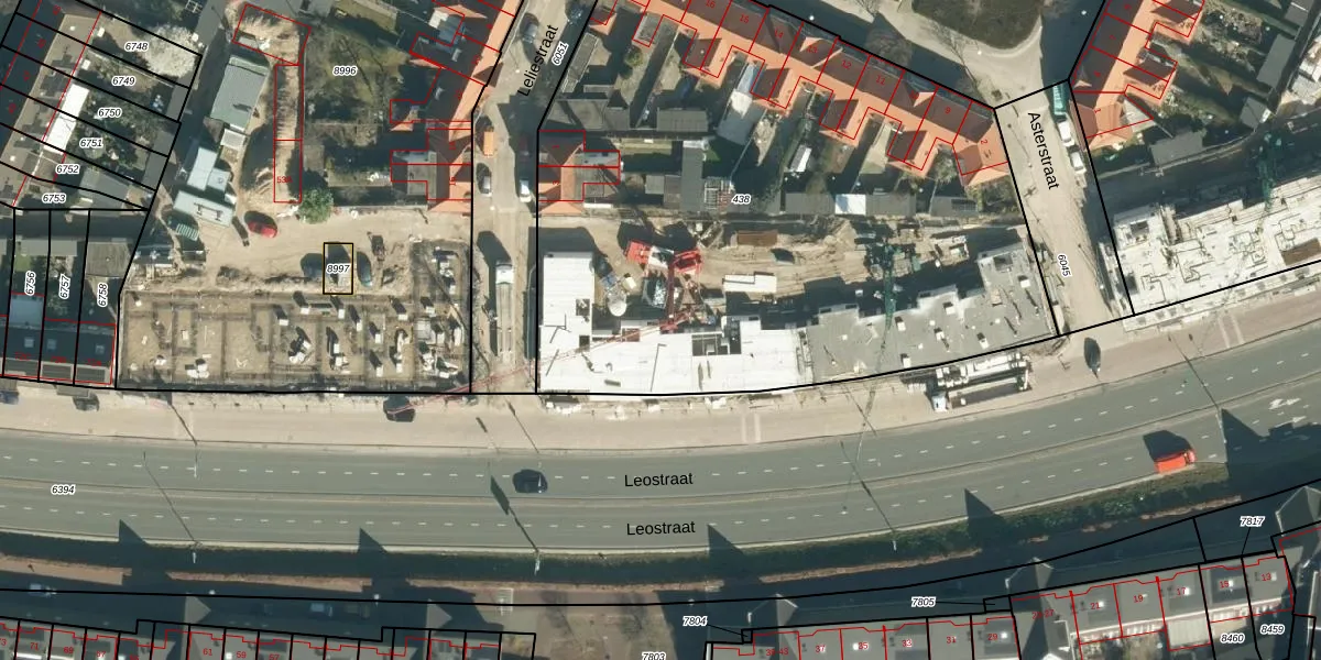 Het perceel waarop Leostraat 56-G staat heeft een oppervlakte van 3905 m². Dit is een zeer groot perceel. De perceeloppervlakte wordt geregistreerd door het Kadaster. Gedetailleerde informatie over de maten van dit perceel kunt u vinden in het rapport Kadastrale kaart met maatvoering van Leostraat 56-G.
