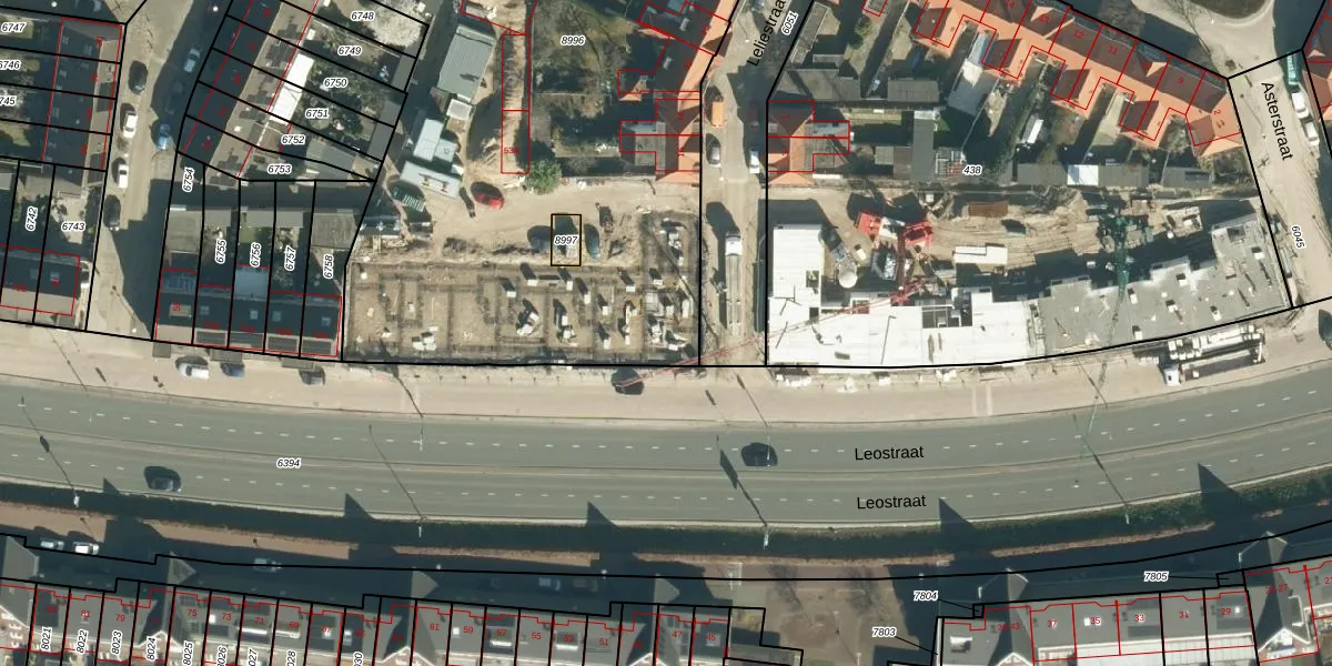 Het perceel waarop Leostraat 66-A staat heeft een oppervlakte van 5007 m². Dit is een zeer groot perceel. De perceeloppervlakte wordt geregistreerd door het Kadaster. Gedetailleerde informatie over de maten van dit perceel kunt u vinden in het rapport Kadastrale kaart met maatvoering van Leostraat 66-A.