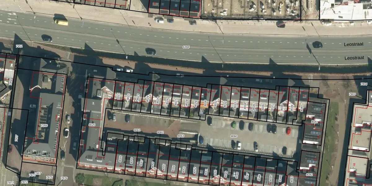Het perceel waarop Leostraat 69 staat heeft een oppervlakte van 90 m². Dit is een klein perceel. De perceeloppervlakte wordt geregistreerd door het Kadaster. Gedetailleerde informatie over de maten van dit perceel kunt u vinden in het rapport Kadastrale kaart met maatvoering van Leostraat 69.