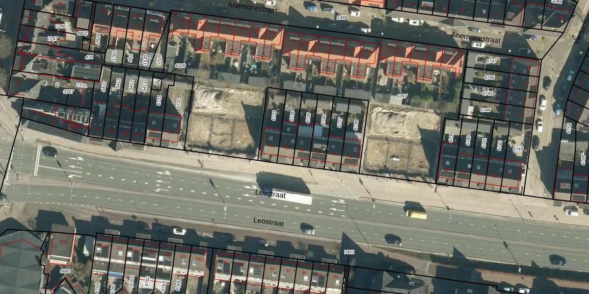 Leostraat 90 is gelegen op kadastraal perceel STM00D6734. Deze kadastrale aanduiding is uniek en wordt gebruikt door het Kadaster om eigendomsrechten en andere zakelijke rechten vast te leggen. Het perceel maakt onderdeel uit van de kadastrale gemeente Stratum.