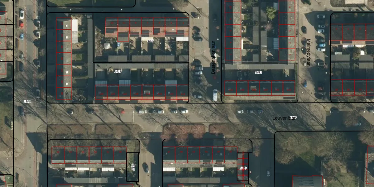 Leuvenlaan 112 is gelegen op kadastraal perceel WSL01M1613. Deze kadastrale aanduiding is uniek en wordt gebruikt door het Kadaster om eigendomsrechten en andere zakelijke rechten vast te leggen. Het perceel maakt onderdeel uit van de kadastrale gemeente Woensel.